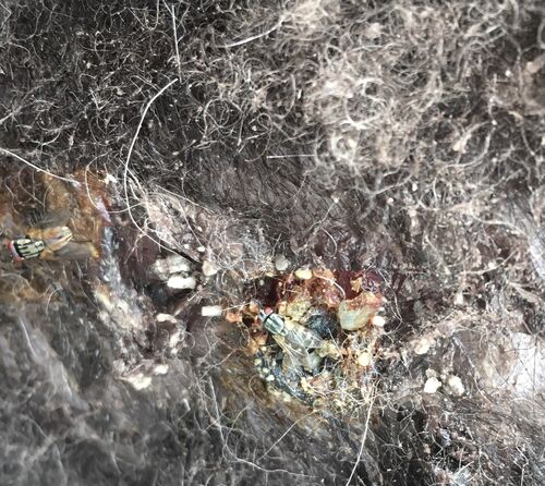 今日は「ハエ」のお話をします。このところ、ハエにまつわる往診が立て続けにありました。ハエの生態について知識がない飼い主さんもいるようですので、ここらでまとめておきましょう。ちよっと気持ち悪い話かも知れませんが、大事なことです。下の写真は、…