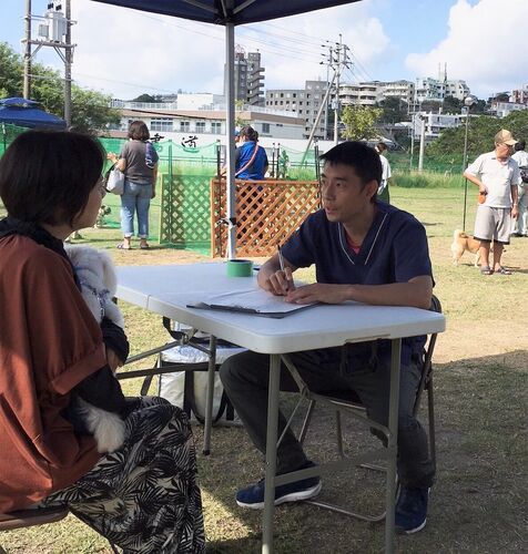 「なは動物愛護フェスタ」に参加してきました。 愛犬健康相談のテントで3時間、30件近くの相談をお受けしました。 事故があってはいかんと思い、往診カバンを横に置いて相談をお受けしていましたが、何事もなく終わってホッとしました。 「歯石ですか、う〜…
